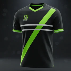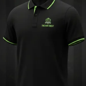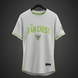 Heritage Arch Branding: “THE FAN CREST” arched across the chest in premium high-contrast neon green with white outline detailing.