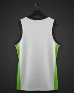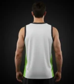 Dominate your training sessions with the Elite Performance Vest by The Fan Crest. This latest iteration introduces a bold, technical aesthetic, featuring high-contrast black ribbed detailing on the neckline and armholes, complemented by striking lime-green side panelling.